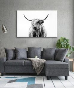 Black & White Highland Cow Canvas Art