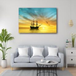Pirate Ship & Sunrise 1 Panel Canvas Art