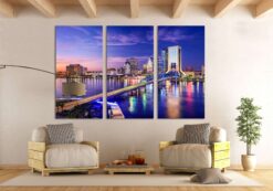 Jacksonville Skyline Canvas Art Wall Decor 3 Piece Canvas Prints Artwork