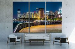 Jersey City skyline by night along Hudson river promenade Canvas Art Wall Decor 3 Piece Canvas Prints Artwork