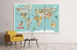 Kids world map Canvas Art Wall Decor 3 Piece Canvas Prints Artwork