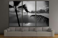 Kona Coast Party Boat Out For A Cruise in black and white Canvas Art Wall Decor 3 Piece Canvas Prints Artwork