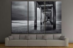 La Jolla beach, California, long exposure under the pylons, black and white image. Canvas Art Wall Decor 3 Piece Canvas Prints Artwork