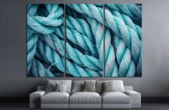 Nautical background. Closeup of an old blue frayed boat rope. Tonned image. Canvas Art Wall Decor 3 Piece Canvas Prints Artwork