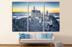 Neuschwanstein Castle at sunset in winter landscape. Germany Canvas Art Wall Decor 3 Piece Canvas Prints Artwork