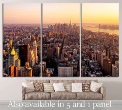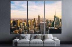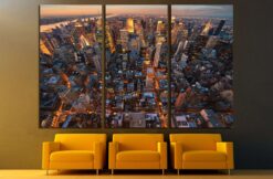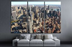 New York City Manhattan skyline aerial view with Empire State Canvas Art Wall Decor 3 Piece Canvas Prints Artwork