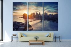 New York City skyline at sunset Canvas Art Wall Decor 3 Piece Canvas Prints Artwork