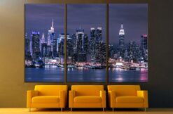 New York City Manhattan skyline panorama at night over Hudson River Canvas Art Wall Decor 3 Piece Canvas Prints Artwork