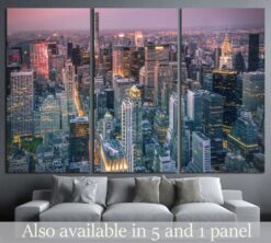 New York City Manhattan after sunset , beautiful cityscape Canvas Art Wall Decor 3 Piece Canvas Prints Artwork