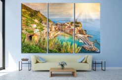 Vernazza and ocean coast in Cinque Terre, Italy Canvas Art Wall Decor 3 Piece Canvas Prints Artwork