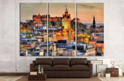 View from Calton Hill towards Edinburgh Castle Scotland Canvas Art Wall Decor 3 Piece Canvas Prints Artwork