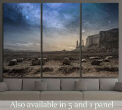 view of a rocky desert landscape at dusk Canvas Art Wall Decor 3 Piece Canvas Prints Artwork
