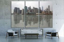 View of financial district in New York taken from the Hudson river 0 Canvas Art Wall Decor 3 Piece Canvas Prints Artwork