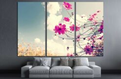 vintage Beautiful cosmos flowers in garden Canvas Art Wall Decor 3 Piece Canvas Prints Artwork