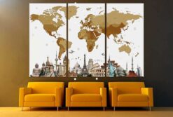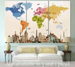 World Map with landmarks Canvas Art Wall Decor 3 Piece Canvas Prints Artwork