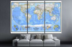 World Map Canvas Art Wall Decor 3 Piece Canvas Prints Artwork