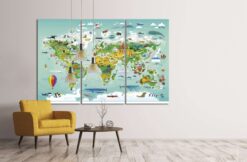 World map for kids Canvas Art Wall Decor 3 Piece Canvas Prints Artwork