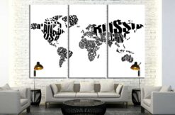 World Map in Typography Canvas Art Wall Decor 3 Piece Canvas Prints Artwork