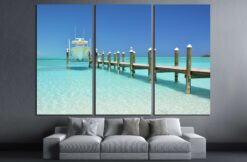 Yacht at the wooden jetty. Exuma, Bahamas Canvas Art Wall Decor 3 Piece Canvas Prints Artwork