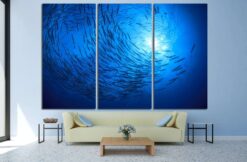 barracuda fish and scuba divers Canvas Art Wall Decor 3 Piece Canvas Prints Artwork