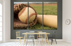 Baseball in a Glove near the Baseball Bat Canvas Art Wall Decor 3 Piece Canvas Prints Artwork