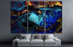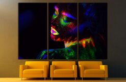 Beautiful extraterrestrial model woman in neon light. Canvas Art Wall Decor 3 Piece Canvas Prints Artwork