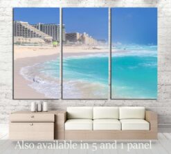 Beautiful beach in Cancun, Zona Hoteliera. Caribbean coast, Yucatan, Mexico Canvas Art Wall Decor 3 Piece Canvas Prints Artwork