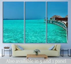 Beautiful beach with water bungalows at Maldives Canvas Art Wall Decor 3 Piece Canvas Prints Artwork
