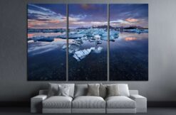 Beautiful cold landscape picture of icelandic glacier lagoon bay, Iceland 0 Canvas Art Wall Decor 3 Piece Canvas Prints Artwork