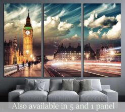 Beautiful colors of Big Ben from Westminster Bridge at Sunset London Canvas Art Wall Decor 3 Piece Canvas Prints Artwork