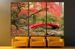 Beautiful Japanese Garden and red bridge Canvas Art Wall Decor 3 Piece Canvas Prints Artwork