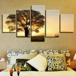 SUNRISE BEHIND TREE 5 Piece Canvas Art Wall Decor