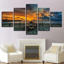 Sunset Boat 5 Piece Canvas Art Wall Decor