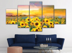 Sunflower Watercolor Flowers Field Wall Art Canvas Decor Printing
