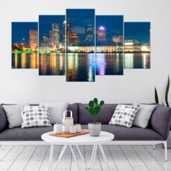 Tampa Florida Downtown Skyline at Night Wall Art Canvas Decor Printing