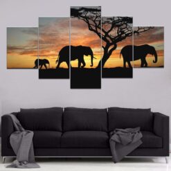 Three Elephants 5 Piece Canvas Art Wall Decor