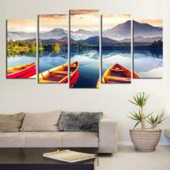 Three Red Canoes 5 Piece Canvas Art Wall Decor