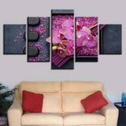 THREE STONE PURPLE ORCHIDS FLOWER 5 Piece Canvas Art Wall Decor