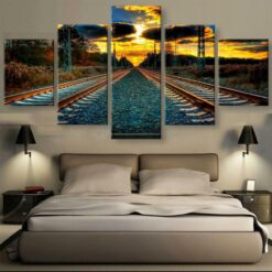 TRAIN TRACKS 5 Piece Canvas Art Wall Decor