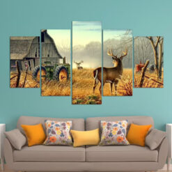 Tractor Deer Field Farm Landscape Wall Art Canvas Decor Printing