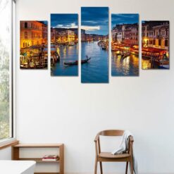 VENICE CANAL IN EVENING 5 Piece Canvas Art Wall Decor