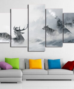 White Howling Wolf with Deer Wall Art Canvas Decor Printing