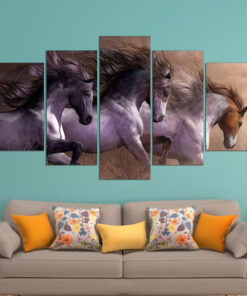 White Three Horses Running Wall Art Canvas Decor Printing