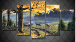Whitetail Deer Buck Doe River Cabin Wall Art Canvas Decor Printing
