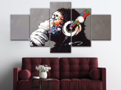 Funny Monkey with Headphone Wall Art Canvas Decor Printing