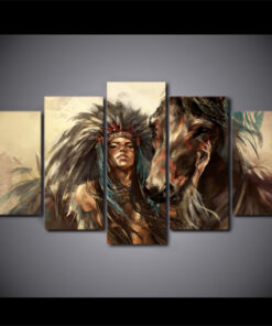 American Indian Girl with Horse Wall Art Canvas Print Decor
