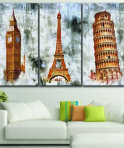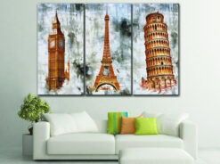 Ancient Eiffel & Pisa Towers & Big Ben London Wall Art Canvas Print Decor