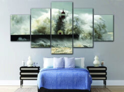 Lighthouse in Heavy Storm Wall Art Canvas Decor Printing