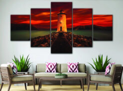 Lighthouse Red Sky Night Wall Art Canvas Decor Printing