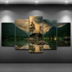 Lightning Mountain Lake Tree Wall Art Canvas Decor Printing